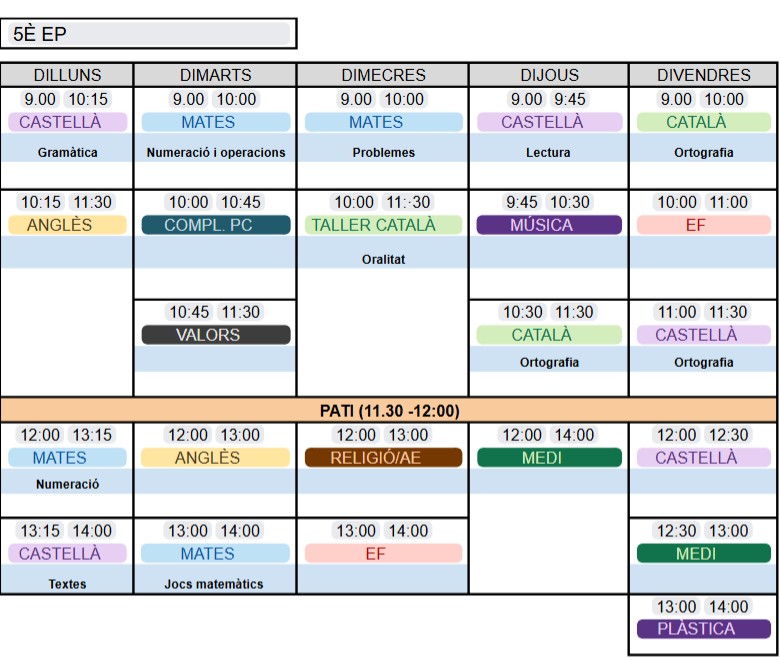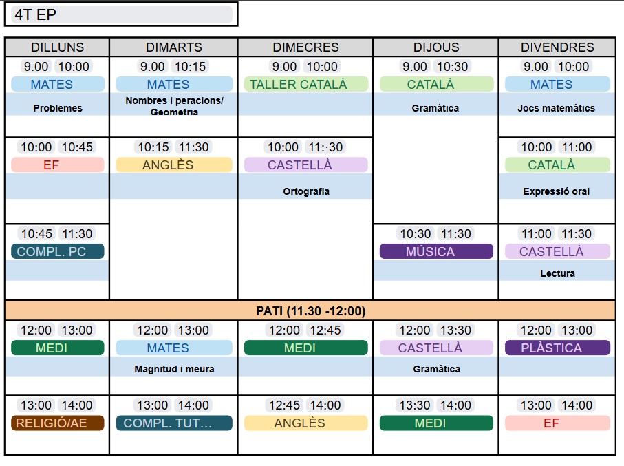 - Vacances de Pasqua: del 2 al 12 d’abril de 2026, ambdós inclosos.